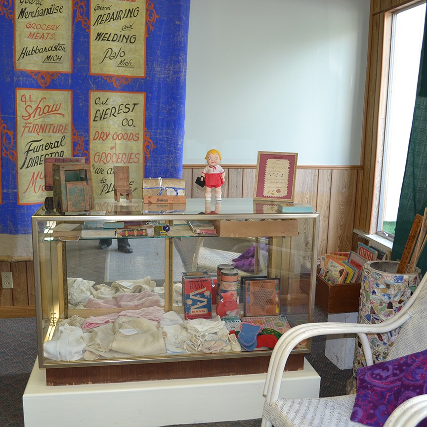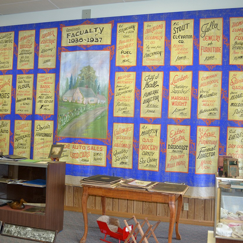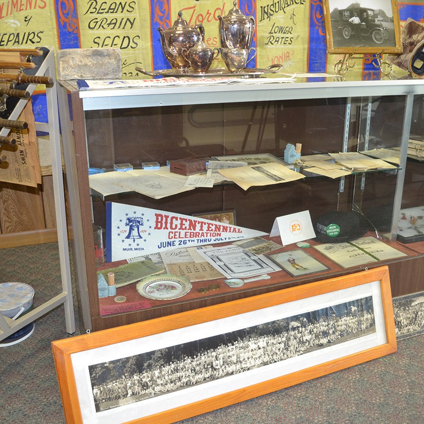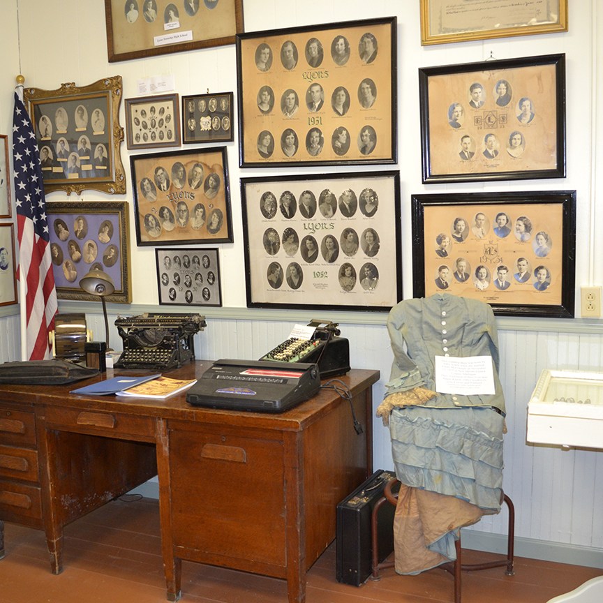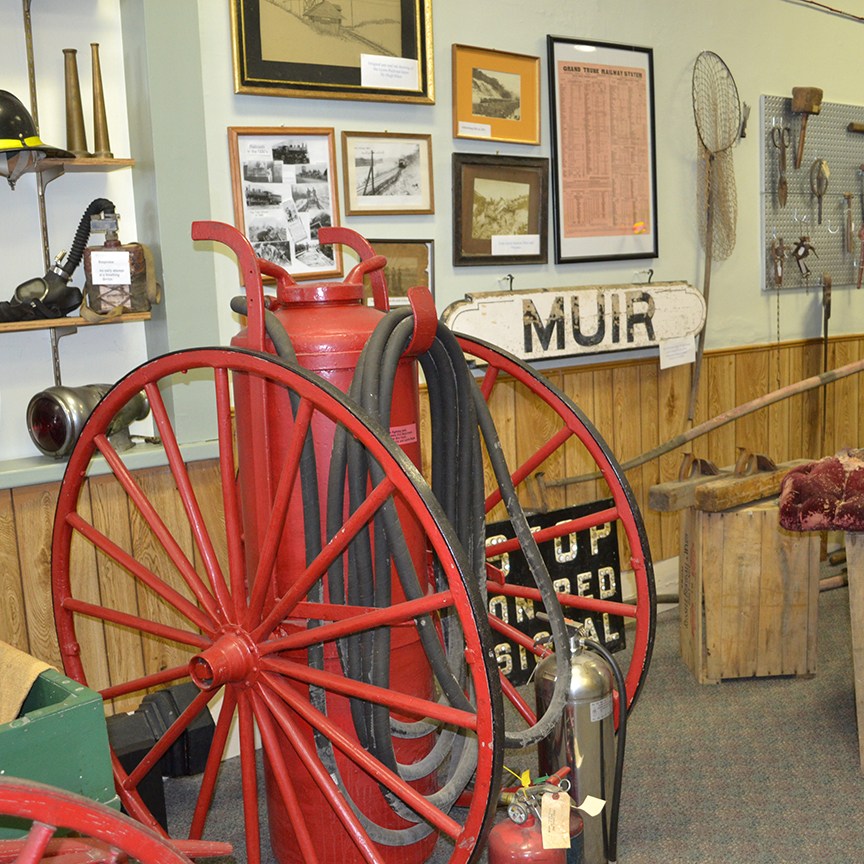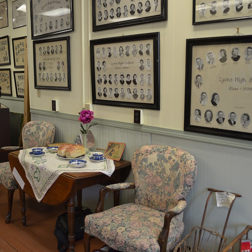Below is a tiled photo gallery of the inside of the Lyons-Muir Historical Museum as of this summer 2024. Click on any of the photos for a closer view, then slide or arrow through the gallery.